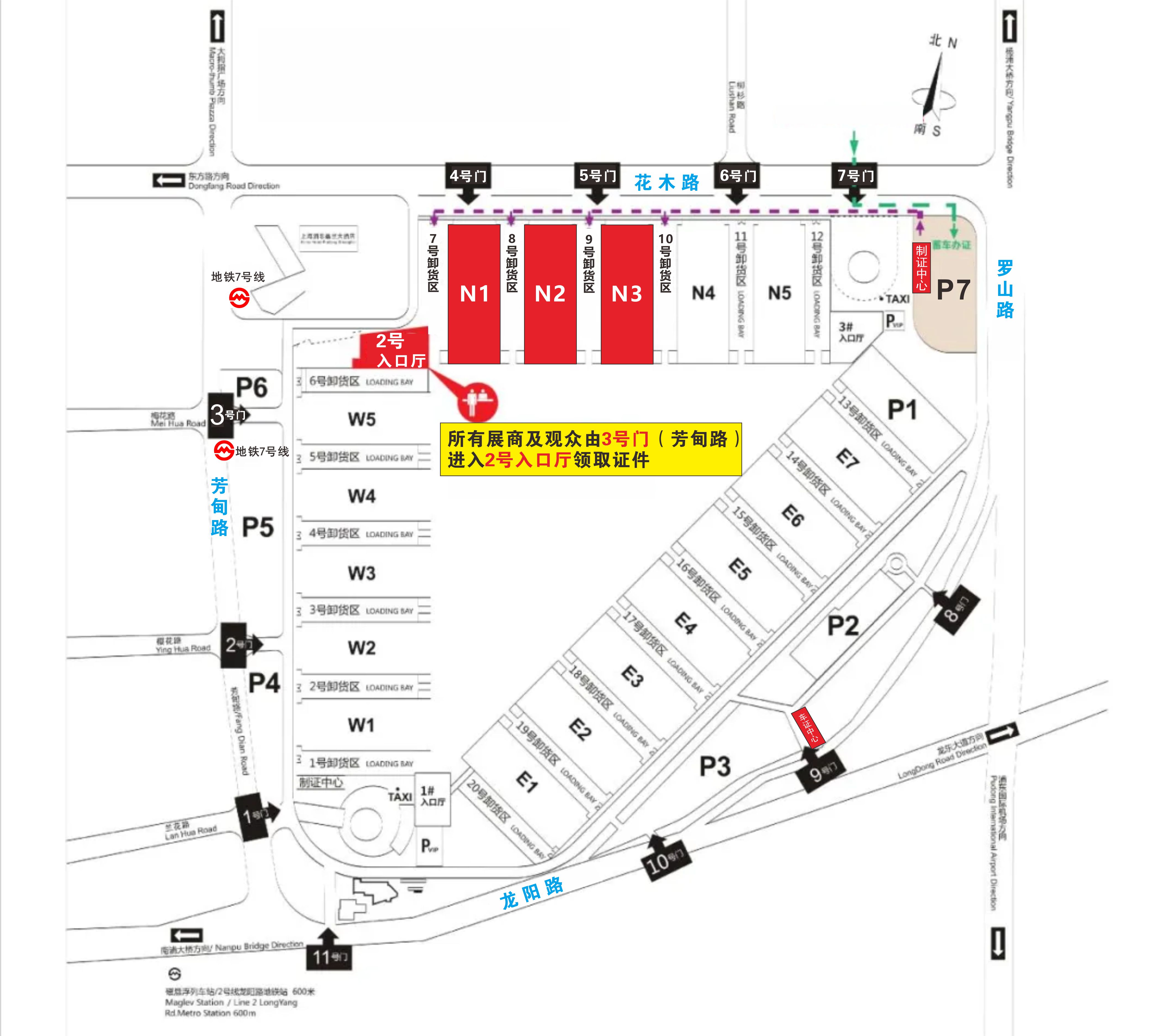 小车自驾:手机导航收索上海新国标博览中心3号门,从上海新国际博览中心3号门进入P5或P6停车场 浦东国际机场至展馆: 1.乘磁悬浮列车至龙阳路站,换乘7号线到花木路站,1号口出,可步行至2号入口厅。 2.地铁:乘2号线至龙阳路站下,换乘7号线至花木路站下车,1号口出,可步行至2号入口厅。 虹桥机场/虹桥高铁站至展馆: 地铁:乘2号线至龙阳路站下,换乘7号线至花木路站下车,1号口出,可步行至2号入口厅。