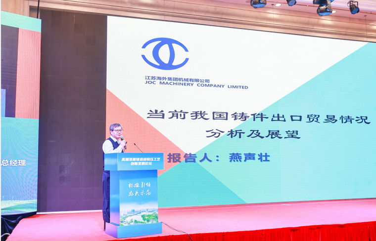 江苏省铸造协会副会长、江苏海外集团机械有限公司副总经理燕声壮作“当前我国铸件出口贸易情况分析及展望”主题演讲