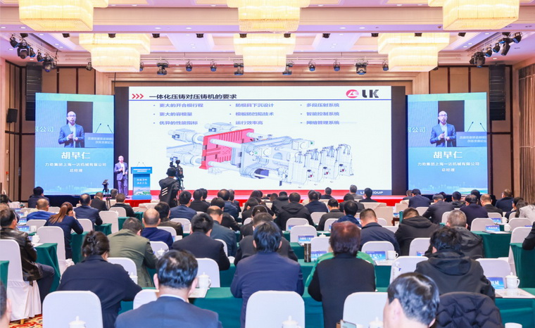 力劲集团上海一达机械有限公司总经理胡早仁作“一体化压铸装备发展趋势探讨”主题演讲